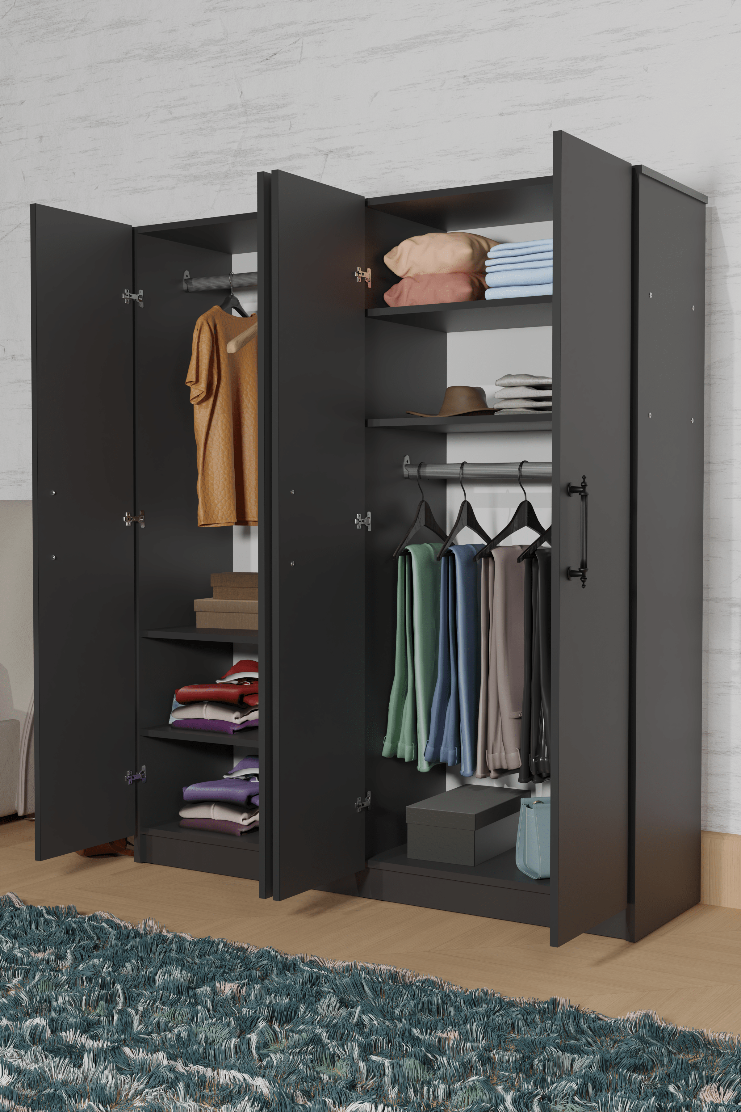 AE-1054 ARENA ANTRASİT GRİ GARDIROP 4 KAPAKLI 2 ASKILIKLI, 6 RAFLI DOLAP