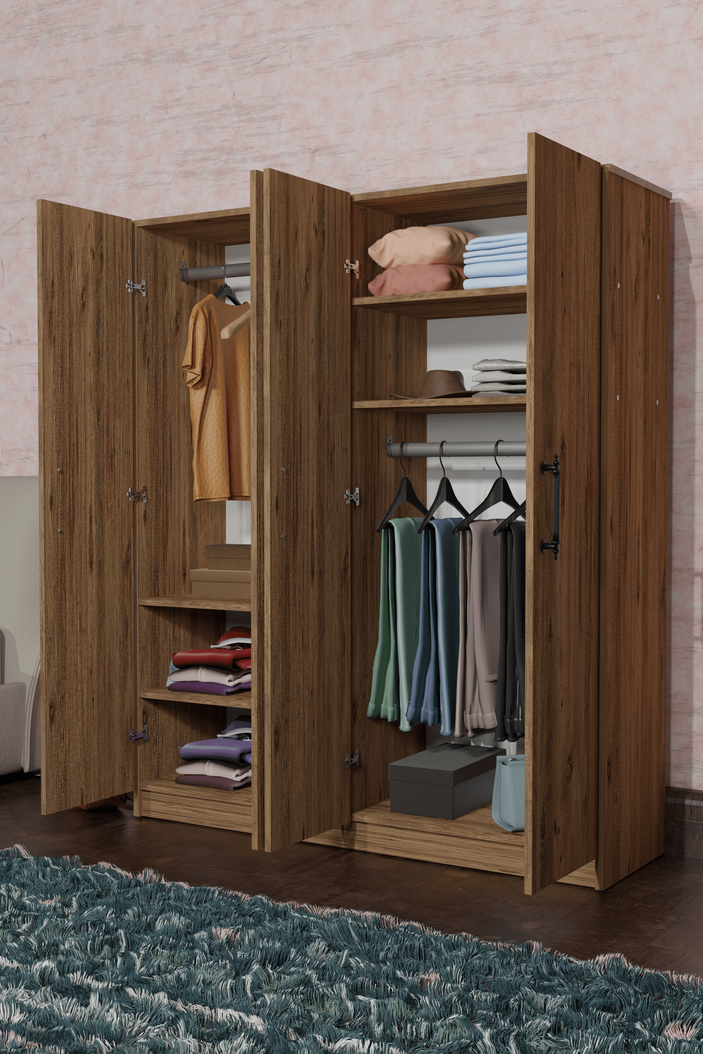 AE-1054 ARENA ATLANTİK ÇAM GARDIROP 4 KAPAKLI 2 ASKILIKLI, 6 RAFLI DOLAP
