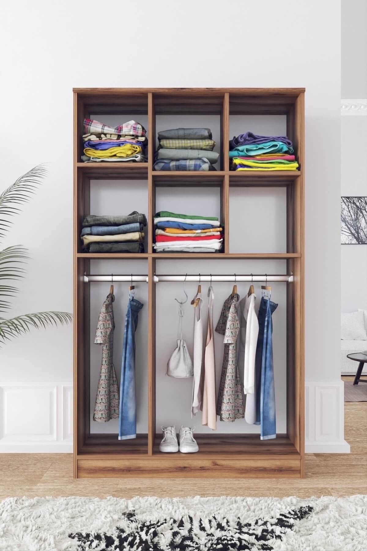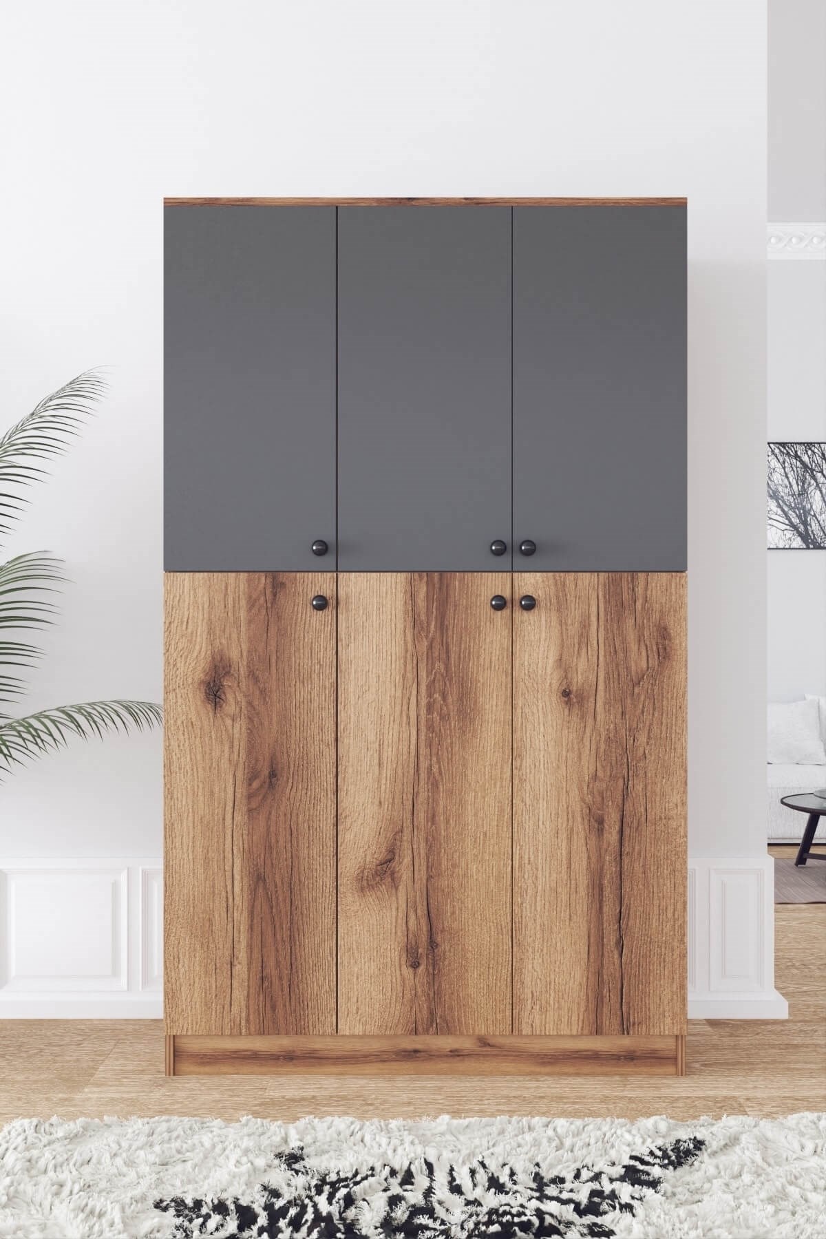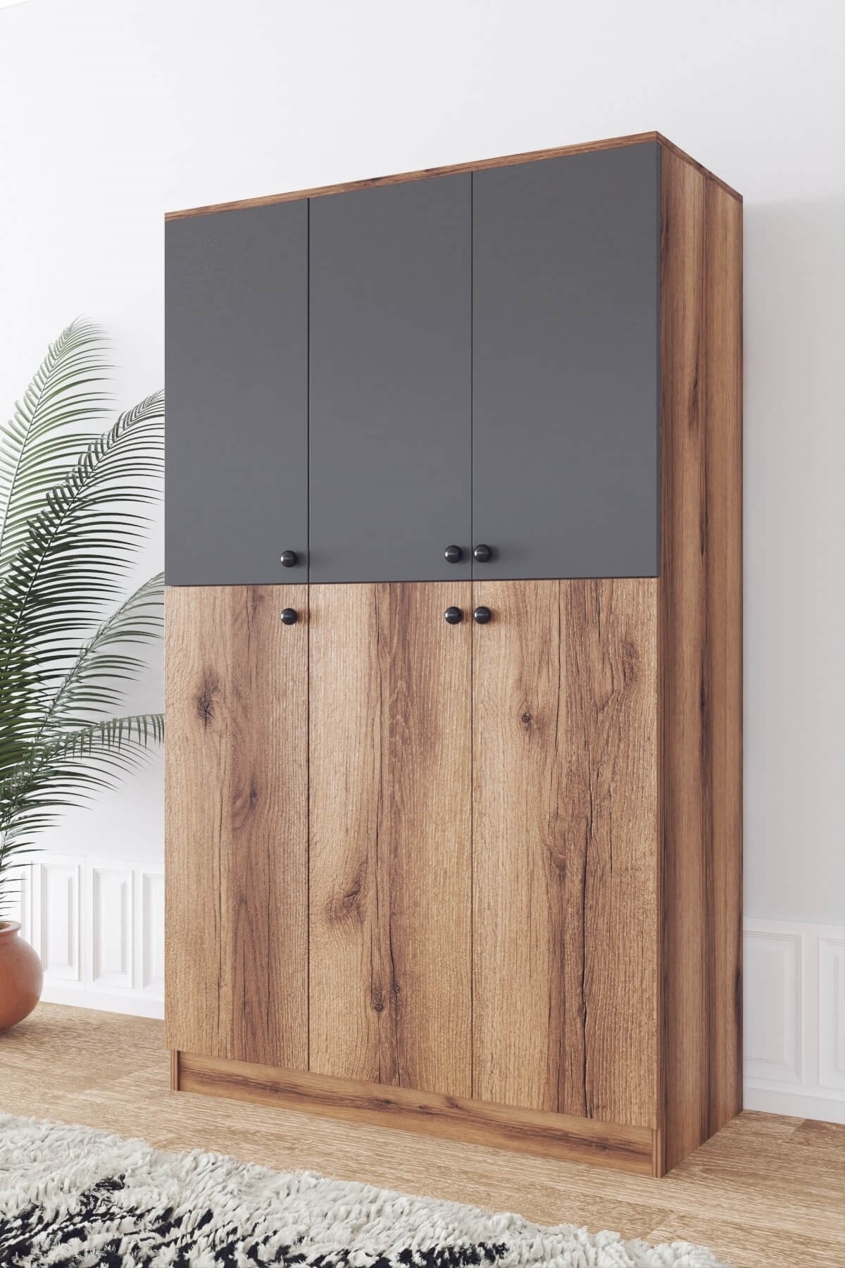 Ae-1087 Marco Ceviz/antrasit 6 Kapaklı Gardırop 6 Raflı 2 Askılıklı MARCO1087