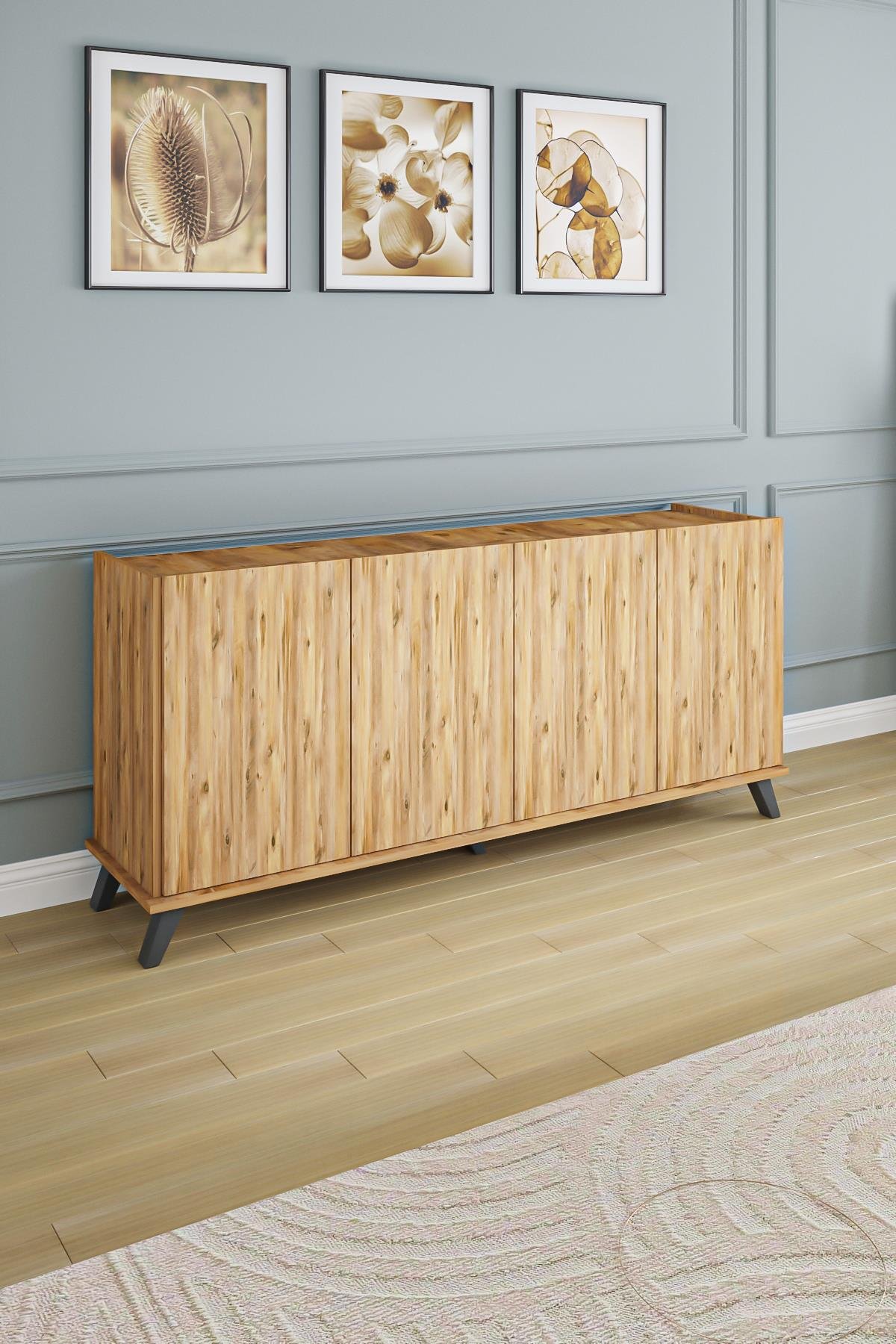 AE-2056 AKEL Atlantik Çam 4 KAPAKLI GENİŞ KONSOL 180 CM AYAKLIRAFLI ODASI TV SEHBASI,