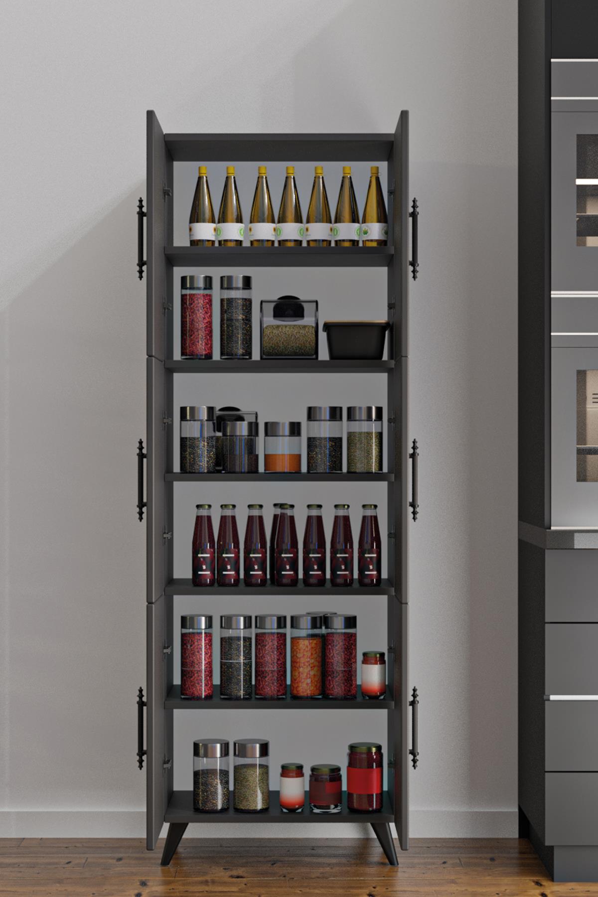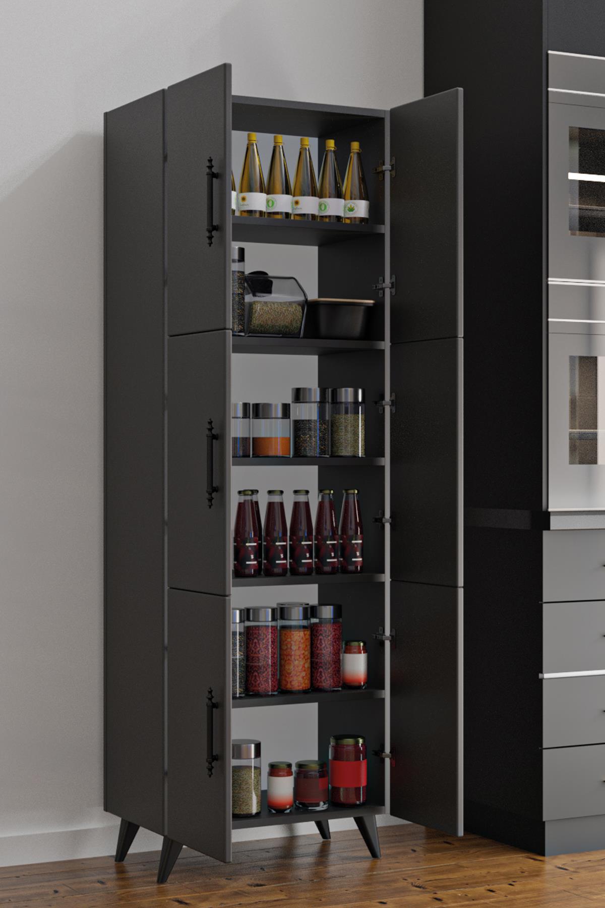 AE-3010 Nehir Antrasit Gri Çok Amaçlı Mutfak Dolabı&Banyo Dolabı,Kiler Dolabı, 6 Kapaklı, 6 Raflı