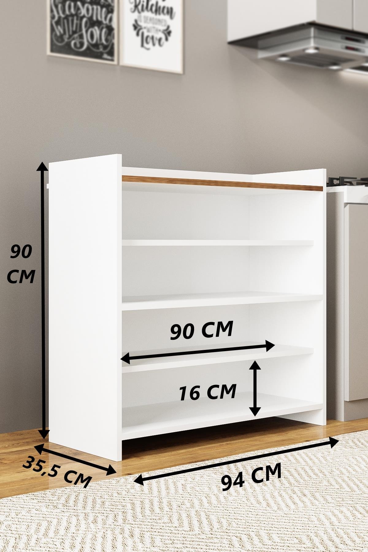 ; AE-3060 FORUM BEYAZ/ÇAM 4 KAPAKLI, 4 RAFLI, AYAKKABILIK, ÇOK AMAÇLI DOLAP, KAHVE KÖŞESİ, BALKON, BANYO, ; ; Ürün Ölçüleri : Yükseklik: 90 cm - Genişlik : 94 cm - Derinlik : 35,5 cm'dir.; ; ; Montaj: Kolay kurulum talimatları ile birlikte gelir, birkaç basit adımda monte edilebilir.; ; ; Malzeme: 18 Mm suntalamdan yapılmaktadır.; Dayanıklı ve uzun ömürlü malzemelerden üretilmiştir, kolayca temizlenebilir yüzeye sahiptir ; ; Yer Tasarrufu: Kompakt yapısı ile küçük alanlarda bile maksimum depolama alanı sunar.; ; ; Evinizin girişinde düzenli bir görünüm sağlar.; ; ; Ürünle birlikte tüm hırdavat malzemeleri gönderilmektedir.; Parçaların üzerinde kurulum numaraları mevcuttur.; ; ; Ürünümüzün kurulum şeması veya kurulum videosu mevcuttur.; ; ; Yaşanılacak olumsuz durumlar için BEDELSİZ PARÇA desteğimiz vardır.; Bizimle iletişime geçebilirsiniz.; ; ; Kurulumuna başlanmış ürünlerin iadesi kanun gereği kabul edilmemektedir.; ; .; Not: Kullanım için daha yüksek bir alan olması adına hareketli raflar 10 mm tercih edilmiştir.