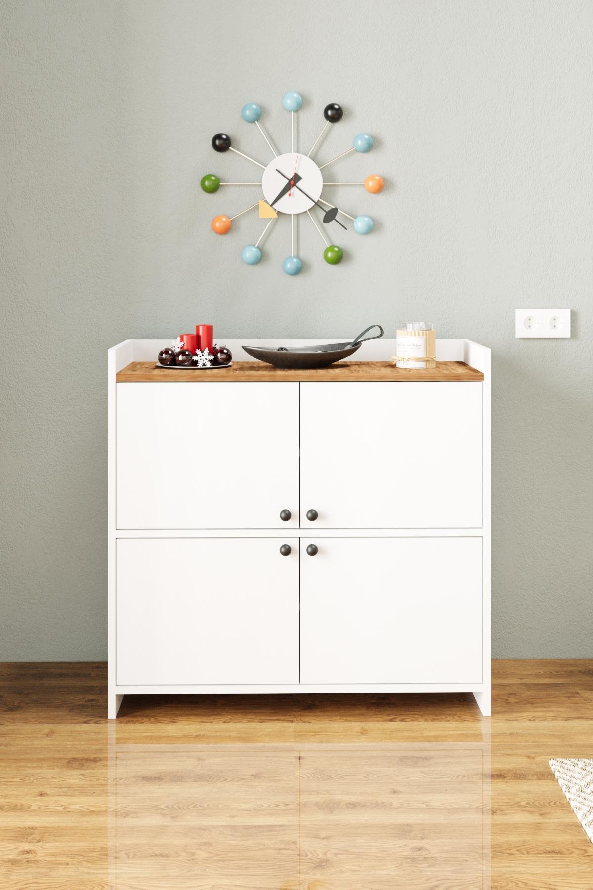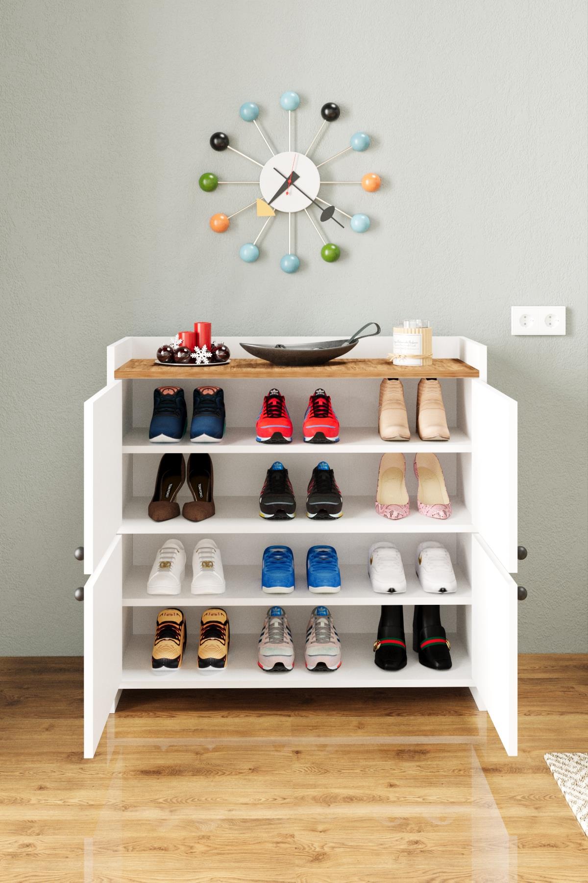 AE-3060 FORUM BEYAZ/ÇAM 4 KAPAKLI, 4 RAFLI, AYAKKABILIK, ÇOK AMAÇLI DOLAP, KAHVE KÖŞESİ, BALKON