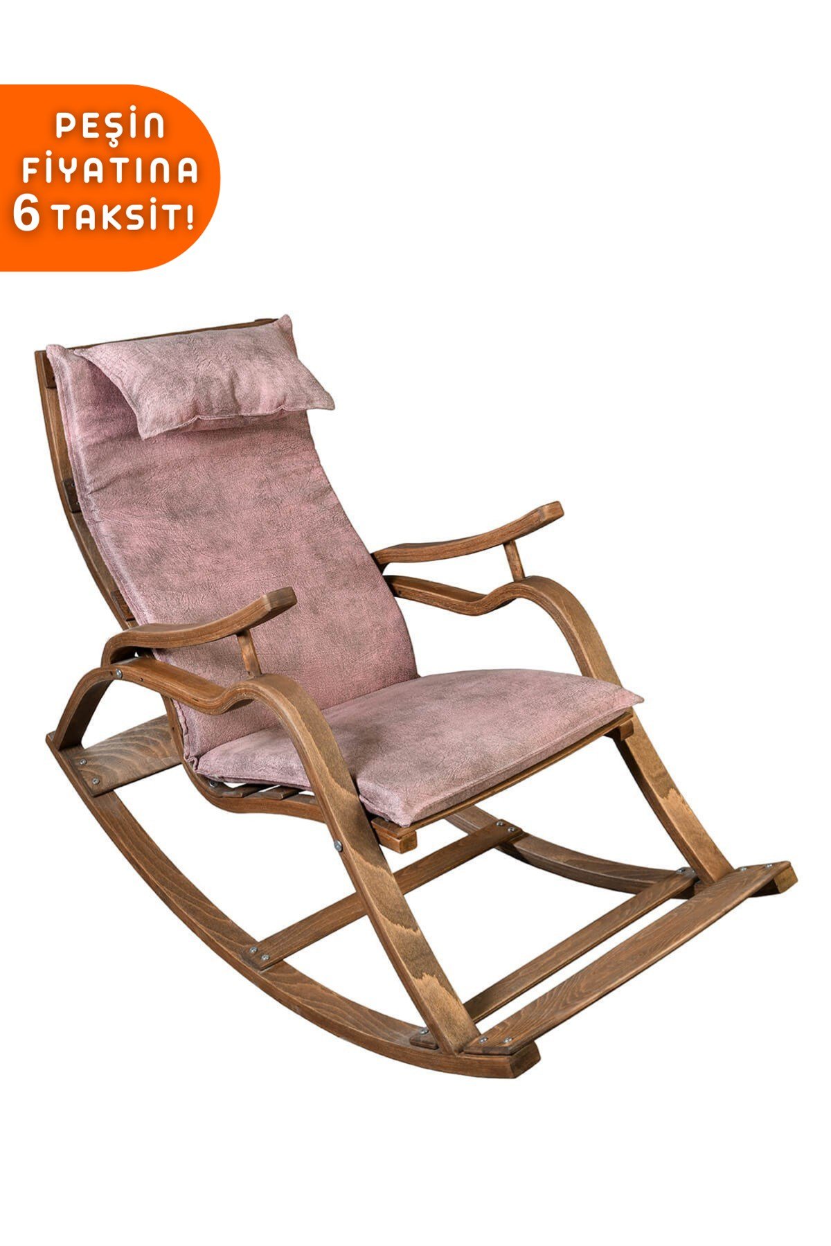 AE-5002 MARMARA SALLANAN SANDALYE GÜL KURUSU MİNDERLİ CEVİZ RENGİ DİNLENME SANDALYESİ