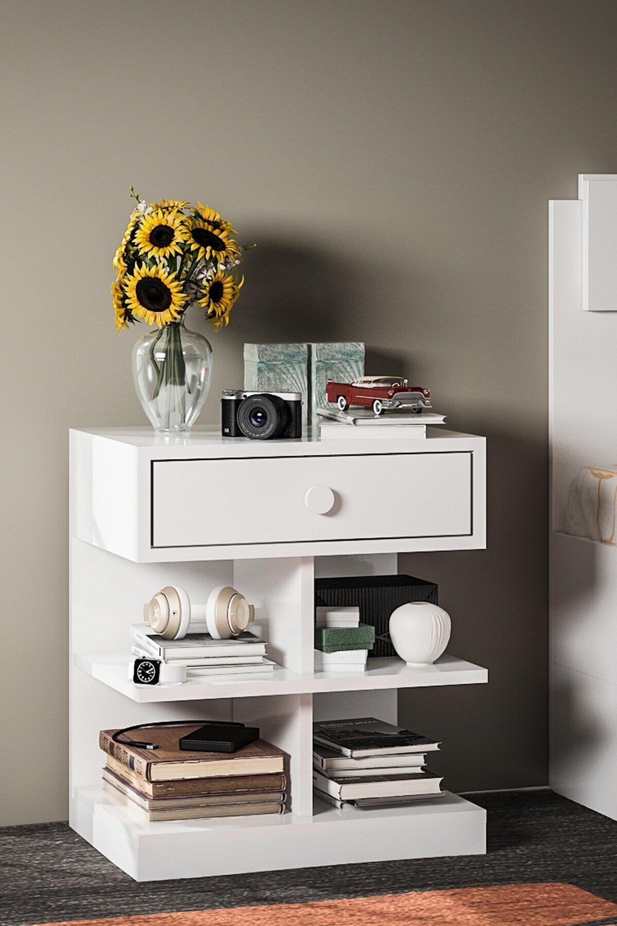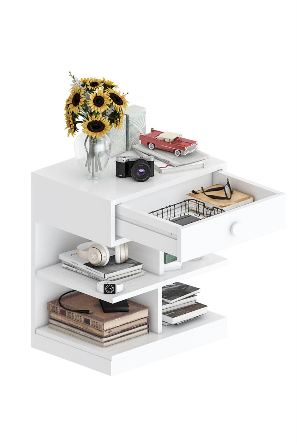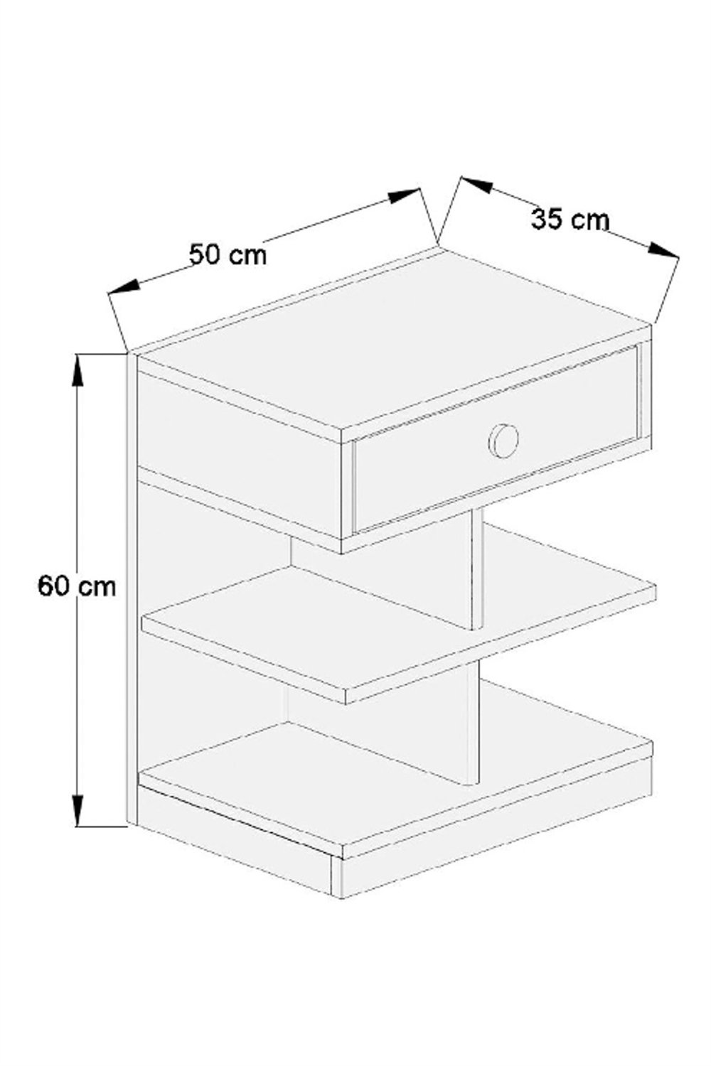 - İNCİ 2 Çekmeceli Beyaz-Sonomo Komodin Ölçüleri; Genişlik : 43, cm; Yükseklik: 49 cm Derinlik: 36 cm